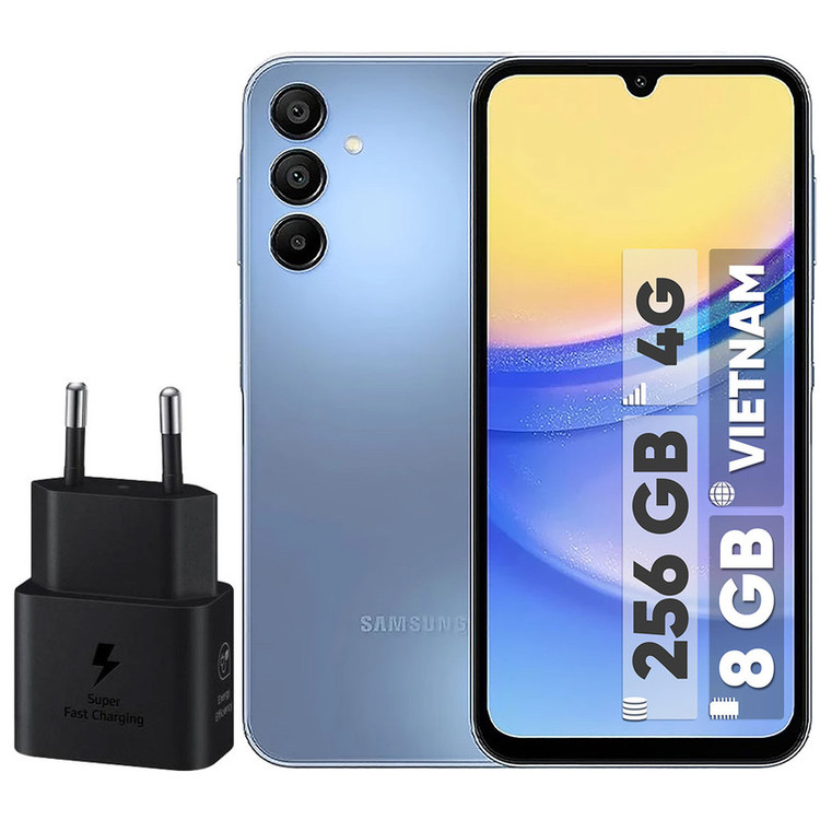 گوشی موبایل سامسونگ مدل Galaxy A15 دو سیم کارت ظرفیت 256 گیگابایت و رم 8 گیگابایت به همراه شارژر 25وات سامسونگ - ویتنام